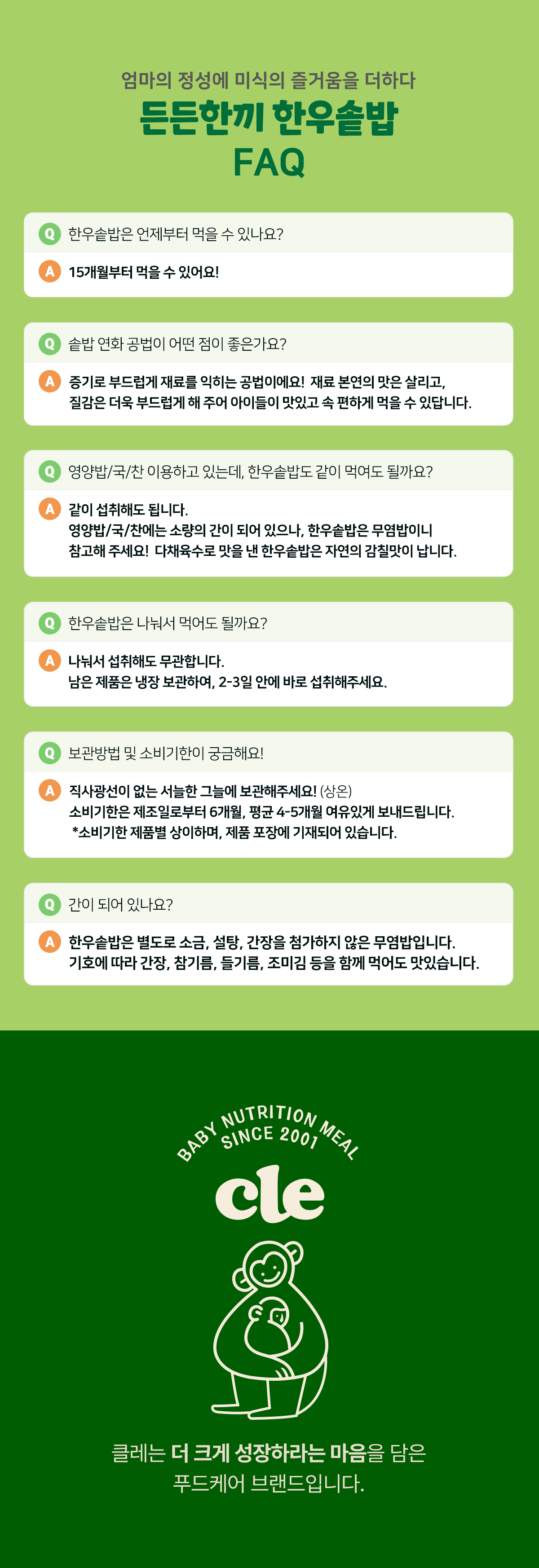 | 원재료명 및 함량 | [한우오리지널] 유기농 쌀(국내산) 33.26%, 쇠고기(국내산/한우) 15.8%, 단호박(국내산)8.32%, 당근(국산)8.32%, 양파(국산)7.28%, 대파(국산)7.28%, 느타리버섯(국산)3.33%, 마늘(국산)1.29%, 생강즙0.17%, 정제수14.97% [한우곤드레] 유기농 쌀(국내산) 34.07%, 쇠고기(국내산/한우) 13.63%, 곤드레(국산) 6.81%, 양파(국산)8.3%, 대파(국산) 8.3%, 무(국산) 7.67%, 새송이버섯(국산) 4.27%, 마늘(국산) 1.32%, 생강즙 0.17%, 정제수15.33%, 들기름0.13% [한우미역] 유기농 쌀(국내산) 33.4%, 쇠고기(국내산/한우) 15.87%, 미역(국산) 7.52%, 감자(국산)5.85%, 양파(국산)8.14% 대파(국산)8.14%, 표고버섯(국산)4.18%, 마늘(국산)1.29%, 생강즙0.17%, 정제수15.03%, 참기름 0.42% |