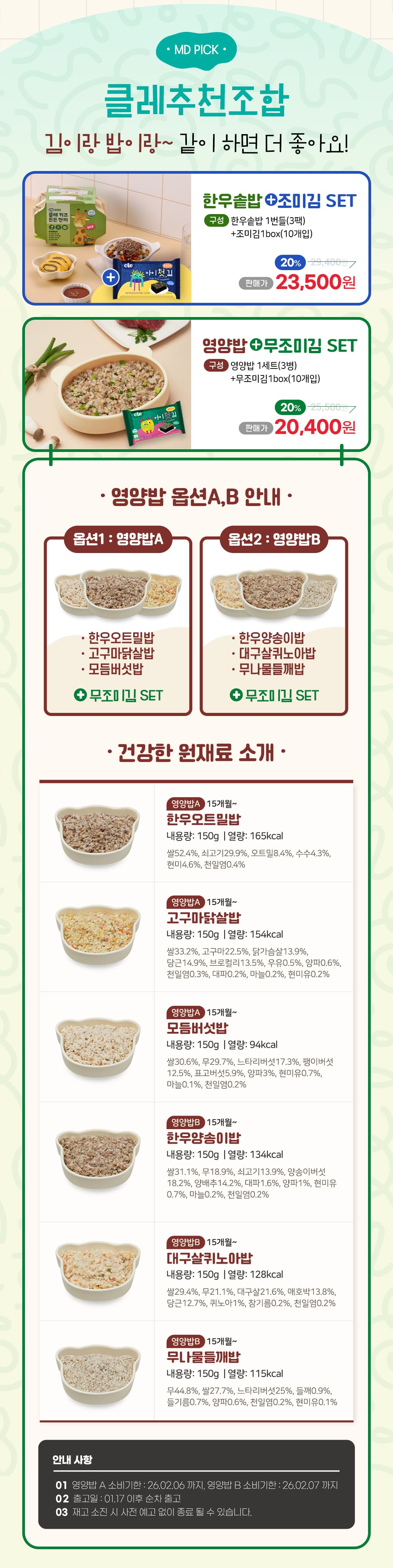 [클레추천] 김·밥SET(영양밥/한우솥밥)