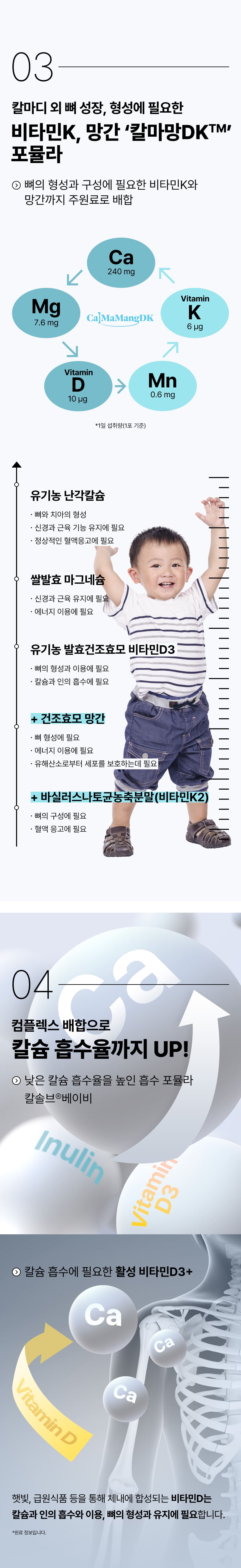 | 성분 및 함량 | [지니어스뉴] DHA 150mg, ALA 150mg, 비타민E 2.66 mgα-TE / 1캡슐 [그로우뉴] 칼슘 240 mg, 마그네슘 7.6 mg, 비타민 D 10 ㎍, 비타민 K 6 ㎍, 망간 0.6 mg |