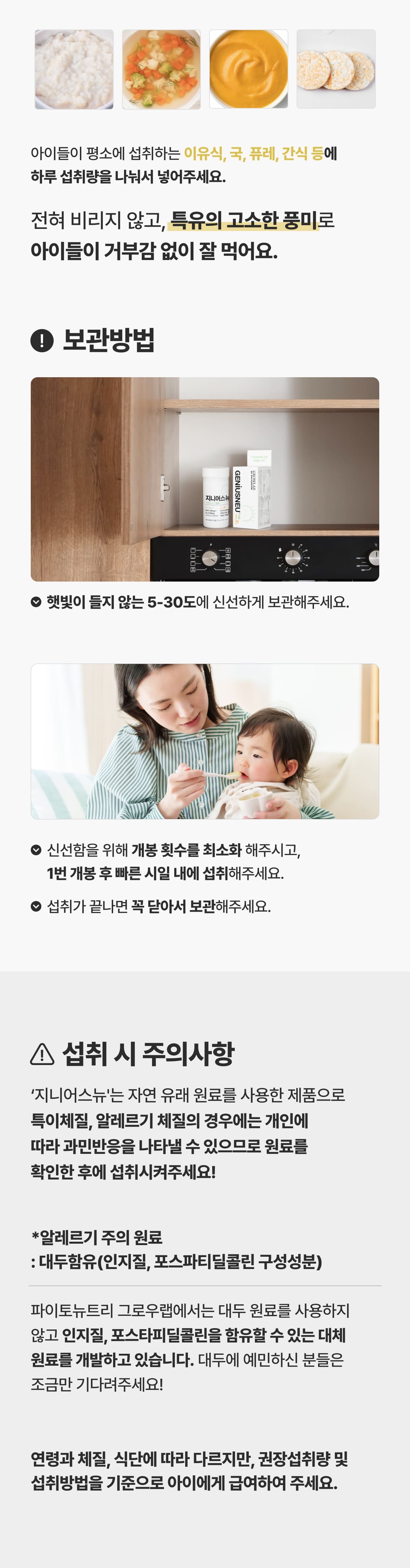 | 알레르기 원료 표시 | [지니어스뉴] 대두함유 [그로우뉴] 알류(달걀) 함유 |